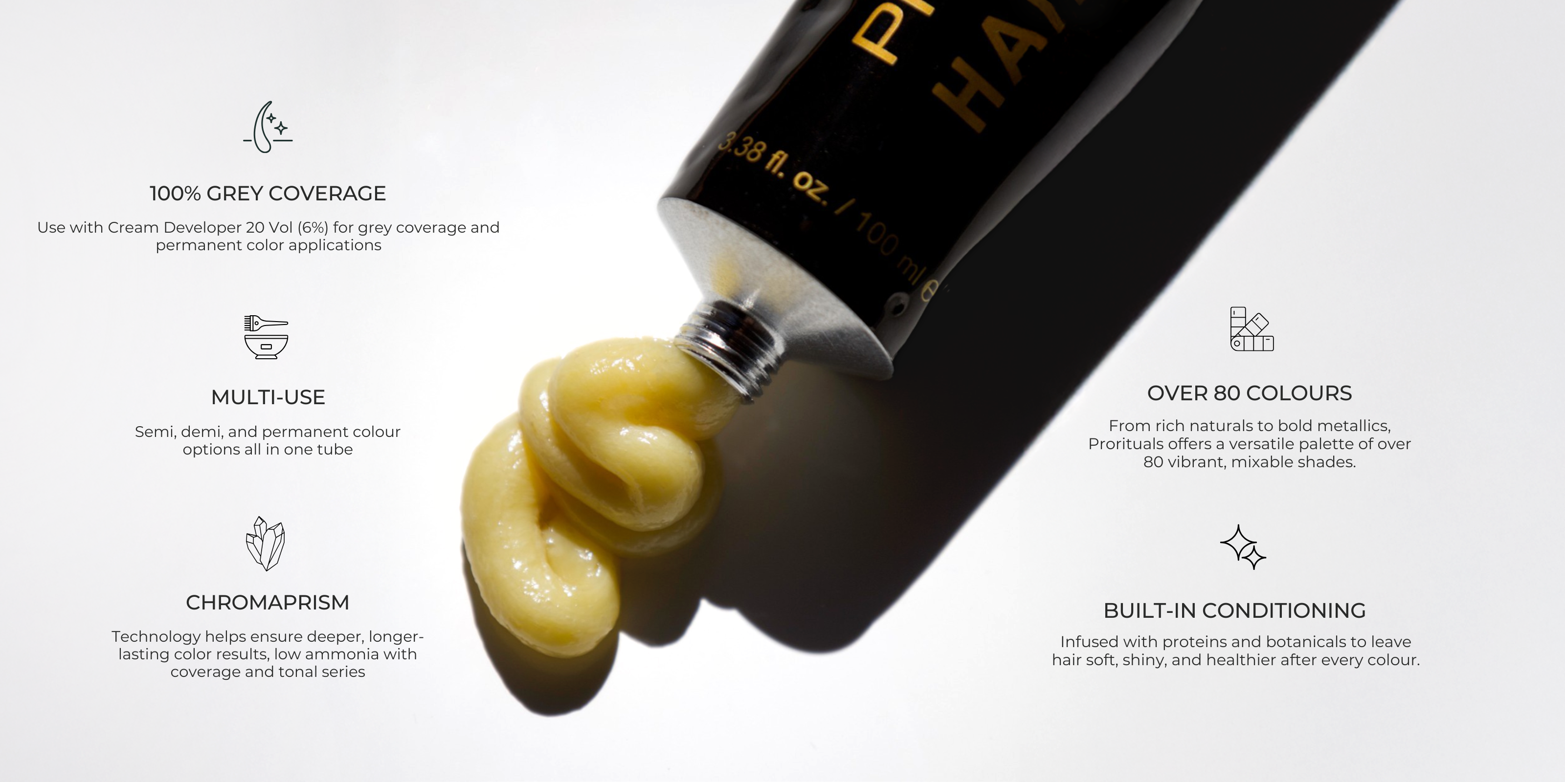 High-quality pigments result in vibrant, rich colours that offer 100% coverage on white hair. The formulation ensures stabilised colours, less fading, and continued brightness.